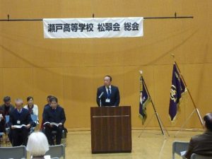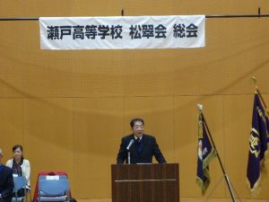 その後、岡久校長より、創立100周年についてのお礼と瀬戸高校が学校再編により令和10年度より大きく様変わりする(総合学科・昼間定時制総合学科・通信制普通科によるフレキシブルハイスクール)ことについての説明がなされ、今後も瀬戸高校同窓会(松翠会)との連携とご協力をお願いしたいとのお話がありました。